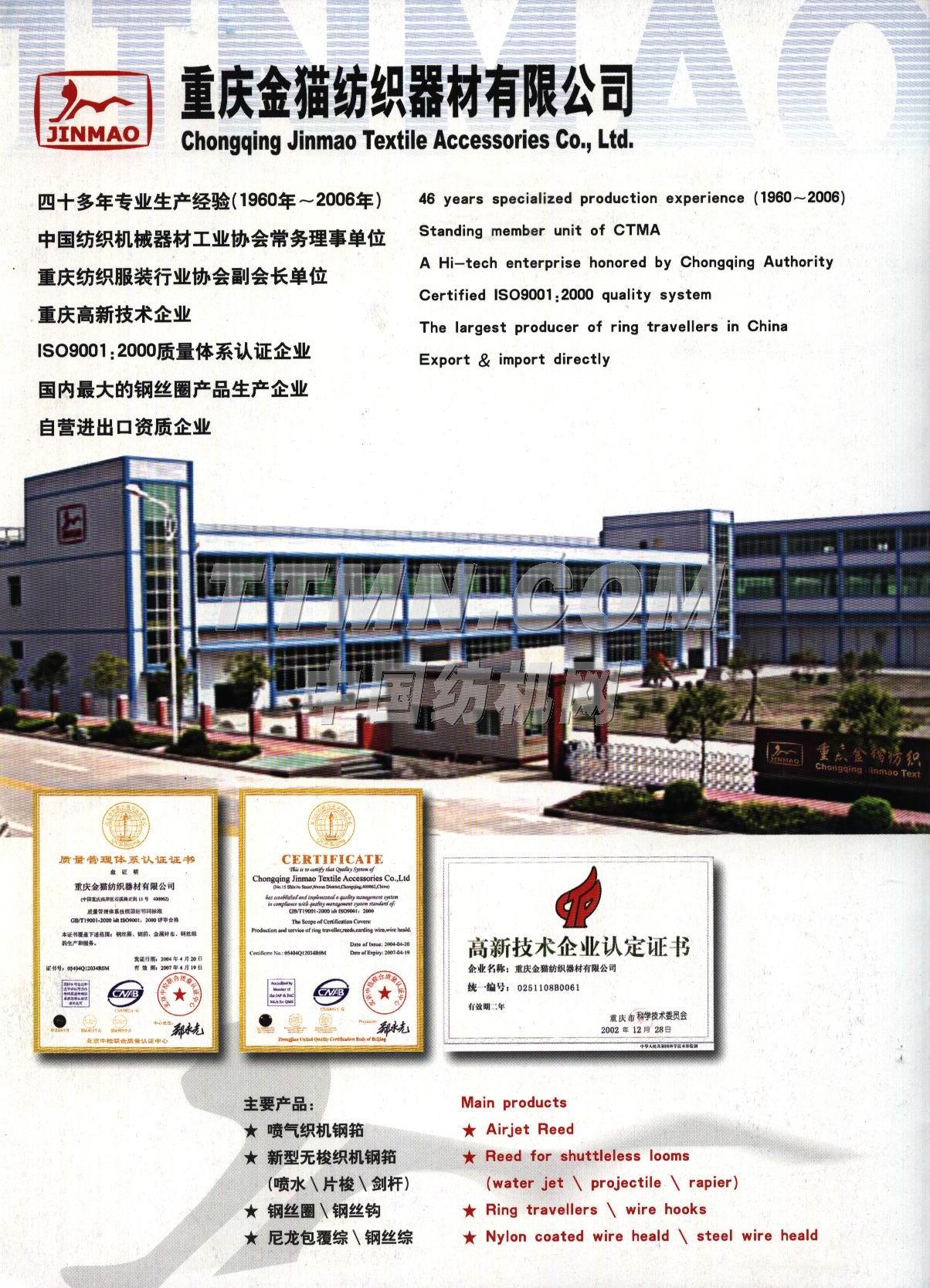 您所在的位置:紡機(jī)網(wǎng) > 紡織機(jī)械樣本庫 > 重慶金貓紡織器材有限公司