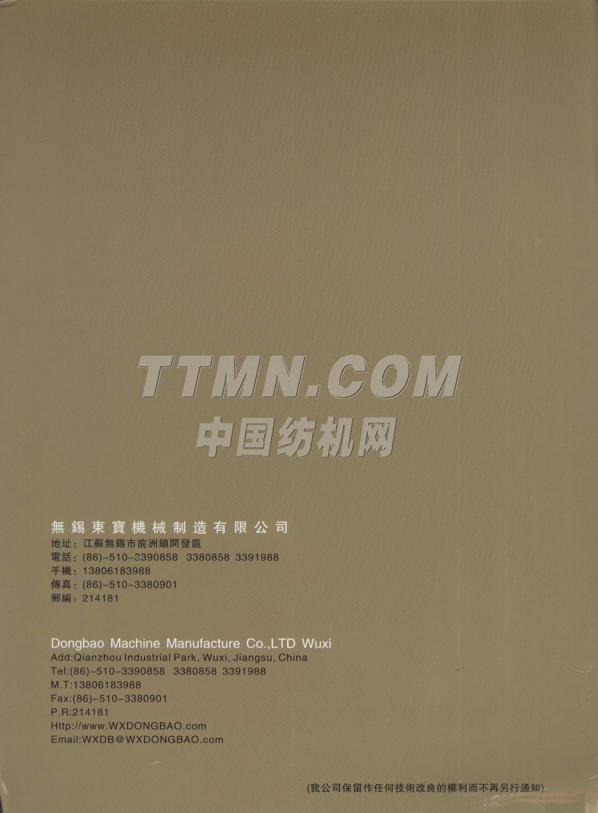 您所在的位置:紡機(jī)網(wǎng) > 紡織機(jī)械樣本庫(kù) > 無(wú)錫東寶機(jī)械制造有限公司