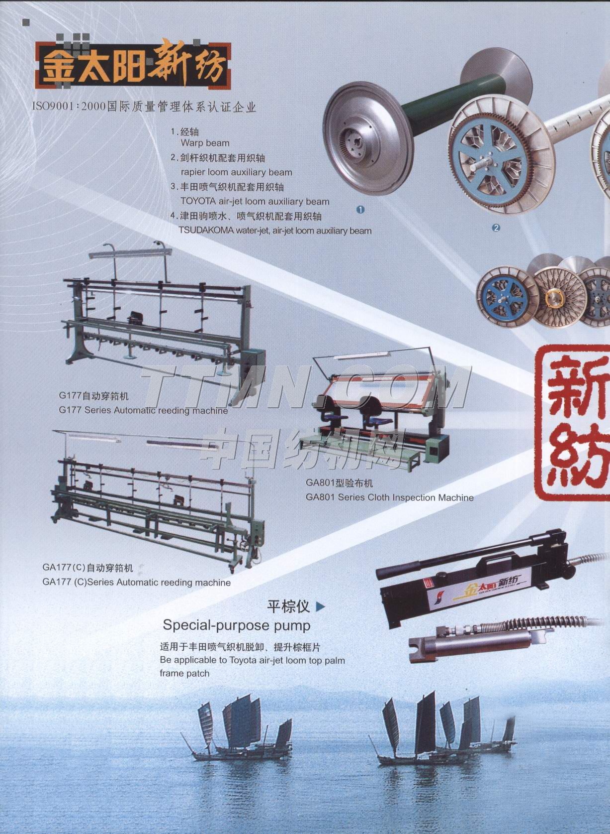 您所在的位置:紡機(jī)網(wǎng) > 紡織機(jī)械樣本庫(kù) > 無(wú)錫市金太陽(yáng)新紡織機(jī)配套有限公司