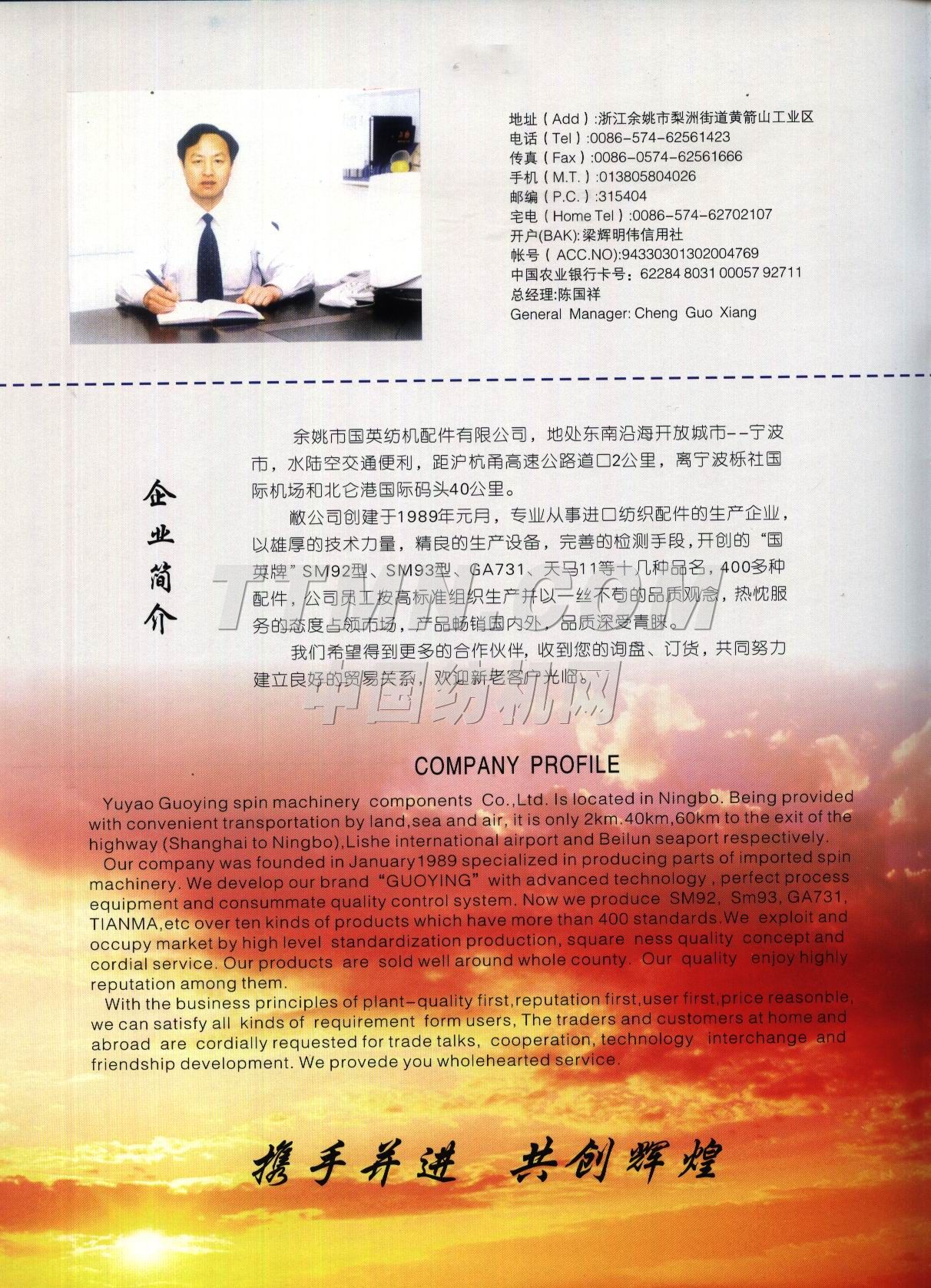 您所在的位置:紡機(jī)網(wǎng) > 紡織機(jī)械樣本庫 > 余姚市國(guó)英紡機(jī)配件有限公司