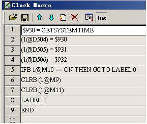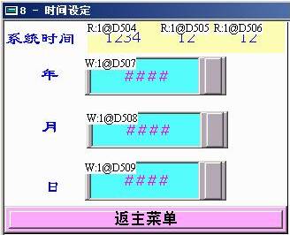 在人機(jī)界面內(nèi)通過宏指令讀出系統(tǒng)設(shè)定時(shí)間,分別賦值給不同的數(shù)據(jù)寄存器,如圖8所示,運(yùn)行過程中通過自定義輸入時(shí)間年月日和系統(tǒng)本身時(shí)間進(jìn)行監(jiān)控比較,程序判斷當(dāng)系統(tǒng)時(shí)間超過設(shè)定時(shí)間時(shí),系統(tǒng)自動(dòng)停止運(yùn)行,如圖9所示。