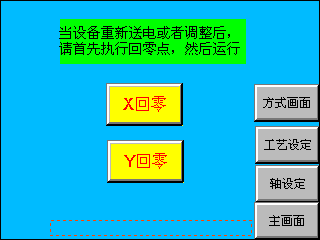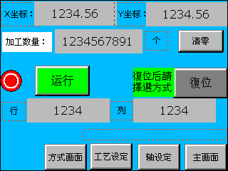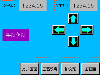 (1)觸摸屏畫面設(shè)計(jì):在觸摸屏畫面里,此次采取標(biāo)準(zhǔn)CNC的理念,有三種控制方