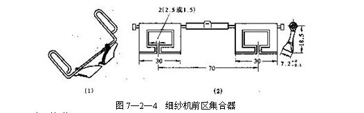 常用集合器有多種型式,按外形有木魚形、梭子形、框形等;按安裝方式有吊掛式和擱置式。常用的集合器如圖7—2—4所示。集合器使用不當(dāng)會增加紗疵,當(dāng)口徑過小、掛花、抖動及橫動不靈活時(shí),反而使紗線質(zhì)量下降、斷頭增加,產(chǎn)生條干竹節(jié)。