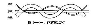 花式紗線一般由三根紗線組成,即芯線、固線、飾線,如圖8—4—1所示,芯線起骨架作用,主要提供紗線的強(qiáng)力,一般選用強(qiáng)力較高的長絲或紗線作為芯線。固線起加固作用,用來固定花形,使花形按生產(chǎn)時的方式固定下來,從而避免沿長度方向滑移。固線大多采用細(xì)且強(qiáng)力高的長絲。飾線反映花式效應(yīng),花式紗的花式,如粗細(xì)節(jié)、圈圈、小辮子等,均是通過飾線而表現(xiàn)出來。飾線可采用棉條或粗紗經(jīng)相同的牽伸但不同超喂(如圈圈紗),或經(jīng)不同的牽伸來生產(chǎn)(如竹節(jié)紗),也可采用長絲,經(jīng)不同的超喂來生產(chǎn)(如結(jié)子紗)。采用不同顏色的兩根粗紗經(jīng)不同牽伸不同超喂,可生產(chǎn)出粗細(xì)變化且顏色變化的花式紗。