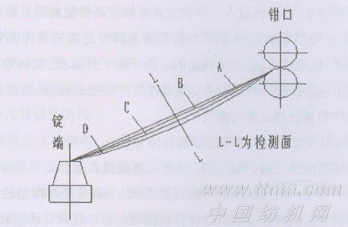 A線為鉗口至錠端所連直線,B線為上限位線,C線是理想中線,D線為控制下限位線,L-L為檢測(cè)控制界面,CCD檢測(cè)范圍是B-D線之間,如紗線超過(guò)此范圍的異常震動(dòng),CCD檢測(cè)器可以自動(dòng)不予檢索。這里值得說(shuō)明的問(wèn)題有兩點(diǎn),一點(diǎn)是上限位B線的設(shè)定必須是與直線A線留有一定的下垂量,否則運(yùn)行中一但產(chǎn)生卷繞的線速度微大于牽伸的線速度時(shí),就會(huì)產(chǎn)生細(xì)節(jié),為杜絕紡紗中的細(xì)節(jié)產(chǎn)生(牽伸與卷繞不匹配發(fā)生的)必須保證全過(guò)程紡紗中粗紗線條略松方可,二是調(diào)整量必須累積漸進(jìn)的完成,也就是說(shuō)粗紗張力大了小了,要調(diào)整達(dá)到適中位置也必須是逐漸地完成,其漸增量為0.1mm。調(diào)整到適中位置時(shí)自動(dòng)調(diào)整完成,嚴(yán)格的說(shuō)自動(dòng)調(diào)整粗紗張力是在不斷地進(jìn)行,幾乎無(wú)停調(diào)可言,自動(dòng)調(diào)整張力是在初始張力手動(dòng)調(diào)整完成的基礎(chǔ)上進(jìn)行的,這樣可以大大地縮短自動(dòng)調(diào)整的時(shí)間,所謂手動(dòng)調(diào)整亦是通過(guò)觸摸屏由CCD檢測(cè)而完成的。形象地說(shuō)就是調(diào)整錐輪皮帶起始位置,自動(dòng)調(diào)整就是更換張力微調(diào)和張力棘輪,不同的是CCD傳感器是自動(dòng)無(wú)級(jí)調(diào)整,適應(yīng)各種條件變化,而機(jī)械調(diào)整是人工有限的粗略的級(jí)數(shù),不能完全地滿足各種紡紗條件的變化。