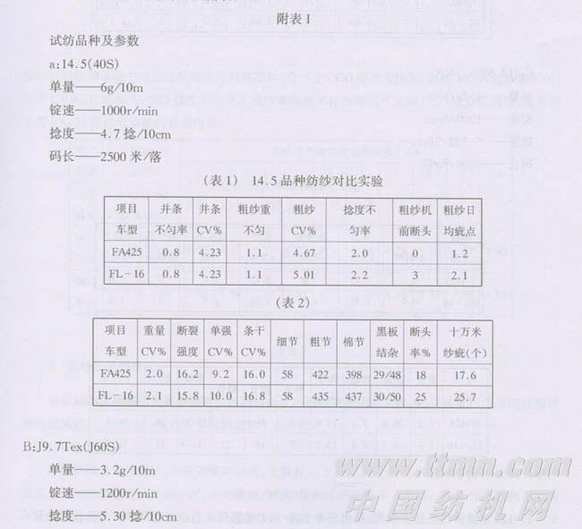 CCD傳感器應(yīng)用紡紗效果見附表: