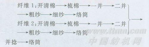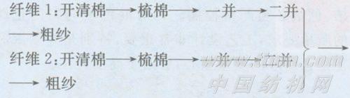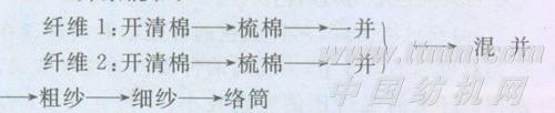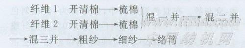 這種混和方法適合于兩種性能相近的纖維,混色較為均勻,工藝流程非常簡(jiǎn)單,生產(chǎn)管理的難度較小。