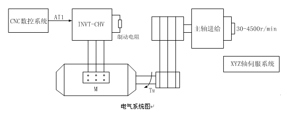 事實證明采用CHV100系列高性能矢量變頻器完全能夠滿足機床主軸控制的要求。CHV100采用的領(lǐng)先的磁通算法,即使在低轉(zhuǎn)速(低頻)運行下也能平穩(wěn)輸出150%的轉(zhuǎn)矩,以滿足不同零件的加工需要,完全可以取代傳統(tǒng)的滾動軸承主軸結(jié)構(gòu),并且此主軸結(jié)構(gòu)簡單、緊湊、可以實現(xiàn)真正的無級調(diào)速。此主軸的轉(zhuǎn)速由外部模擬量信號來控制輸出頻率,在不同的加工工藝(如;粗加工、精加工等)需要不同的轉(zhuǎn)速,此時可由數(shù)控系統(tǒng)輸出不同的模擬量電壓信號給變頻器,實現(xiàn)不同的轉(zhuǎn)速,同時啟停信號也由數(shù)控系統(tǒng)控制,提高了自動化程度、延長了刀具的使用壽命。