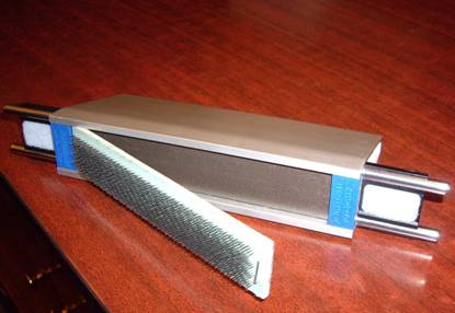 蓋板條與蓋板骨完全依靠磁力黏附固定,不需要螺絲等緊固件,也不需要任何機器來包、卸蓋板。據(jù)稱采用這套磁力蓋板系統(tǒng)以后,由于沒有了包蓋板過程中產(chǎn)生的誤差,使得蓋板針面的平整度明顯提高,在整個機器寬度范圍內(nèi)梳理隔距更加精準(zhǔn);更換蓋板針布非常方便、節(jié)省勞動力,;新蓋板針布上機后更不用磨針找平,延長了針布使用壽命,更有利于生條質(zhì)量。