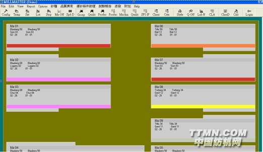 洛菲公司MillMaster為雙向中央控制系統(tǒng),是一套完整的計算機信息管理系統(tǒng),其對所裝有Loepfe電子清紗器的自絡筒機進行全面監(jiān)控。提供所有機臺上所收集來的管紗質(zhì)量分析,機器異常分析,機臺產(chǎn)量及效率統(tǒng)計,并制成圖表格式,成為優(yōu)化工藝設(shè)計、平衡紗線質(zhì)量和絡筒效率,進行在線質(zhì)量監(jiān)控的生產(chǎn)質(zhì)量管理的輔助系統(tǒng),對所有管紗100%進行質(zhì)量監(jiān)測,是整個紗線生產(chǎn)過程的在線監(jiān)控。以下列圖表說明: