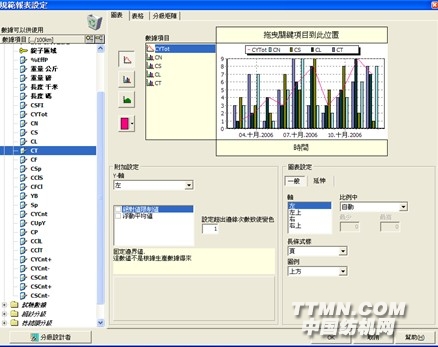 該系統(tǒng)還包括生產(chǎn)報表、質(zhì)量報表、不同紗種疵紗分析統(tǒng)計圖表、機器報表、IPI報表、疵紗分級報表、疵紗趨勢分析圖、品種管理、質(zhì)量異常分析、機器單錠不同時段疵紗分析等大量的數(shù)據(jù)信息報表,為大家提供了一個很好的紗線數(shù)據(jù)存儲、質(zhì)量分析、工藝優(yōu)化的平臺。