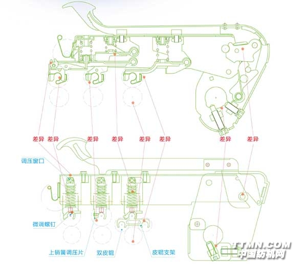 7、后皮輥設(shè)有雙皮輥曲線(xiàn)牽伸,主機(jī)不需要改動(dòng)。
