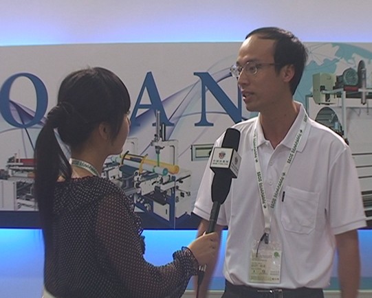 (圖為中國(guó)紡機(jī)網(wǎng)記者現(xiàn)場(chǎng)采訪東民科貿(mào)經(jīng)理 譚軍平)