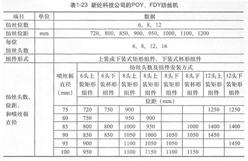 東莞市新綸纖維材料科技有限公司展出POY,F(xiàn)DY紡絲機(jī),其技術(shù)規(guī)格見表1—23。