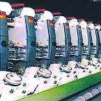②卷繞、清紗、捻接和換管整個(gè)絡(luò)筒過程為全自動(dòng)控制,僅由人工向紗庫喂入管紗及滿筒后人工落筒。