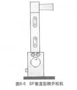 ·SF垂直型精開松機(圖6-5)??? 屬于柔和開松機,用于短和中等長度的天然和合成短纖維的開松,可用作后序機器的儲存單元,是棉梳理生產(chǎn)線的最好選擇。該機由一個配有最小量和最大量控制的光電管的喂料倉、反向驅(qū)動的2個開槽的喂料錫林和一個紋釘滾筒組成。該機標準工作寬度為1500-2500mm,紋釘滾筒直徑是440mm,生產(chǎn)能力達300,800kg/h。