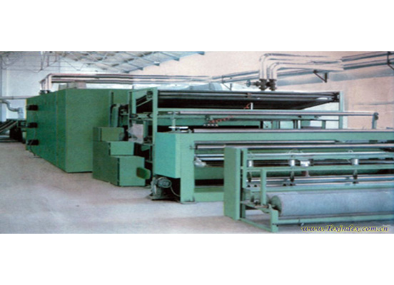 制造流程: 粗開棉機(jī)→精開棉機(jī)→給棉箱→梳理機(jī)→鋪網(wǎng)機(jī)→牽伸機(jī)→噴膠烘燥→切邊卷繞