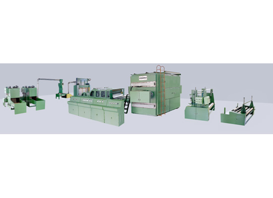 工藝流程: 一步法:開包混合開松→振動(dòng)定量給棉→雙錫林雙道夫→寬幅高速梳理成網(wǎng)→熱風(fēng)烘箱→自動(dòng)成卷→分切 二步法:開松混棉→給棉→梳理→鋪網(wǎng)機(jī)→主梳理機(jī)→熱風(fēng)烘箱→成卷機(jī)→→分切機(jī)