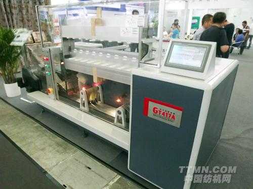 展會(huì)上,該公司帶來了一款名為GT417A旋轉(zhuǎn)式高速電子多臂裝置的產(chǎn)品,該產(chǎn)品適用于各類高檔高速噴水、噴氣織機(jī),是電子式控制的,最大循環(huán)緯數(shù)為12800緯,規(guī)格為16片,12mm間距。同在展臺(tái)上的還有另外一款GT512T高速電子提花機(jī),它主要是用在噴氣、劍桿、片梭等無梭織機(jī)上,織造各種大提花織物的。提花針數(shù)為6144、8192、10240、12288、14336針,開口類型為復(fù)動(dòng)式全清晰梭口,能夠適應(yīng)各類噴氣及劍桿織機(jī)。