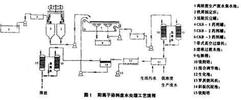 陽離子染料生產(chǎn)廢水處理工藝流程見圖1。