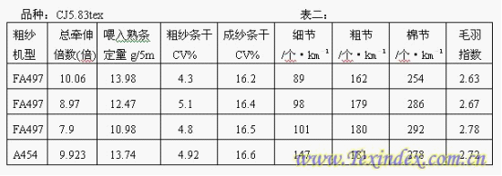 2.4.5FA497粗紗機(jī)工藝優(yōu)選效果