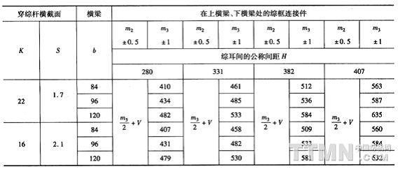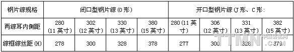 表5—4穿綜桿直接固定于橫梁,配開(kāi)口式綜耳鋼片綜的連體式綜框(mm)
