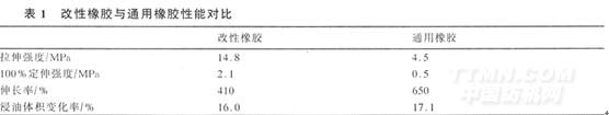 根據(jù)不處理膠輥耐磨性、耐油性的要求,對(duì)比原先普通膠輥所選用橡膠的特性,我們選用了中高丙烯腈含量的改性橡膠。由于此橡膠通過(guò)改性,提高了耐油性,并具有高強(qiáng)度。具體參數(shù)見表1。
