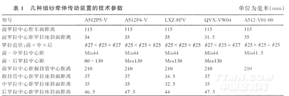 2.1 幾種細紗牽伸傳動裝置的技術參數見表1。