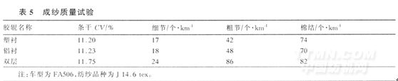 該膠輥與美國鋁襯膠輥、雙層膠輥在五蓮棉紡織廠進行了紡紗品質(zhì)試驗,數(shù)據(jù)見表5;條干質(zhì)量水平穩(wěn)定在烏斯特2001公報25%的水平上。