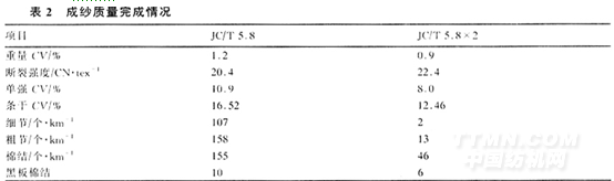 4.2 成紗質(zhì)量完成情況(見(jiàn)表2)