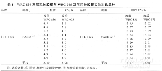 使用無涂料膠輥容易吸附飛花、棉蠟、油漬,所以保養(yǎng)工作要及時到位,一般選用清洗劑清洗,切不可用酸性或堿性洗滌劑,防止膠輥早期龜裂、老化。一般回磨周期在5個月以上;復(fù)磨因受不同因素影響,如原棉含糖高可掌握在3~4個月。總而言之,WRC-975雙層粗紗膠輥對改善粗紗半制品質(zhì)量,進(jìn)一步改善成紗質(zhì)量效果顯著。