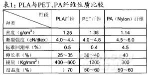 PLA纖維具有與滌綸相似的性能和真絲般的光澤,其回潮率和吸濕性都優(yōu)于滌綸,因此PLA織物的舒適性較好(見表1)。它雖然不是阻燃纖維,但具有低可燃和低發(fā)炯量的性}的彈性回復性、卷曲保持性、手感椰懸主很好。所以PLA纖維可制成長絲、短纖、復和非織造布材料,廣泛用作醫(yī)療衛(wèi)生產(chǎn)品,內、運動衣。家具裝飾布,人造草坪和土工布等。