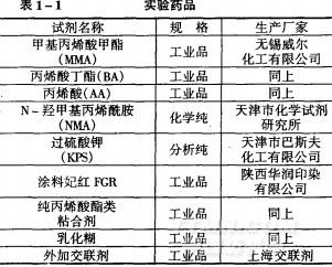 全部單體預(yù)乳化法:將全部的單體及乳化劑、1/2引發(fā)劑、水,一起加入到四口燒瓶中,乳化1b,速度保持在80Or/min左右。將預(yù)乳化液的2/3倒出,在剩余的預(yù)乳化液中加入1/4引發(fā)棄Ij,降低攪拌速度200~25 r/min。溫度升到75~ 80開(kāi)始泛藍(lán),三燒瓶?jī)?nèi)的溫度開(kāi)始急劇上升(這時(shí)要采用適當(dāng)而有效的方法降溫),當(dāng)溫度下降到穩(wěn)定程度時(shí),開(kāi)始滴加剩余的2/3乳化液,大約OY~mm滴加完成,加入1/4的引發(fā)劑,保溫1h。