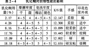 2.4乳化糊對織物性能的影響