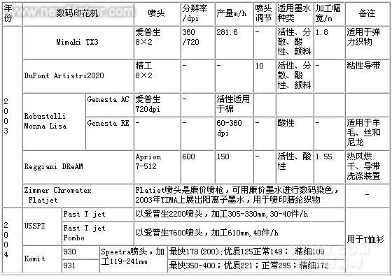 除了上述代表性數(shù)碼印花機(jī)外,尚有Colorspan Display Maker Fabrijet Ⅻ等,有人對(duì)近期市場(chǎng)出現(xiàn)的一些織物數(shù)碼印花機(jī)的性能價(jià)格比作了分析。