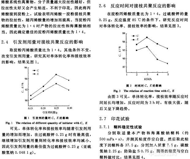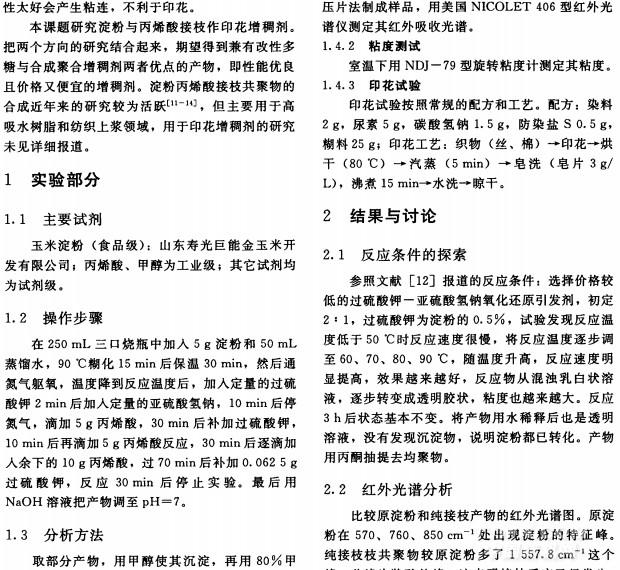 關(guān)鍵詞:淀粉;丙烯酸;接枝共聚;印花