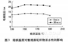 2.3.2焙烘溫度對整理滌綸織物親水性的影響