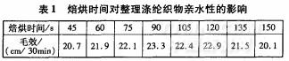 2.3.3焙烘時(shí)間對整理滌綸織物親水性的影響