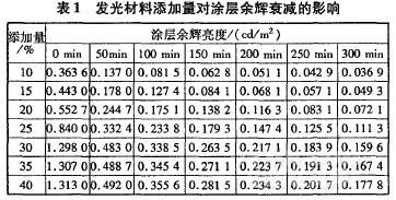 2.1發(fā)光材料添加量對涂層發(fā)光性能的影響