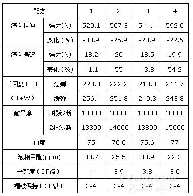 我公司的低甲醛樹脂NLD + 無甲醛樹脂WSD同浴,用于紗卡等織物的免燙整理,織物上游離甲醛含量低、強(qiáng)力好、褲子的褶皺保持好、DP 級高,免燙整理后織物的黃變低。滿足高檔褲子面料的要求。