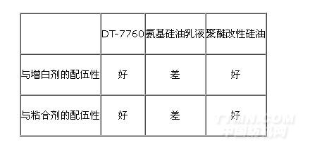 分析上述數(shù)據(jù)可以看出,DT-7760在配伍性方面明顯優(yōu)于其他類型的硅油。