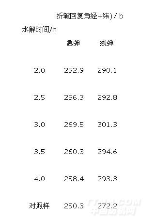 表1 水解時(shí)間對織物防皺性能的影響