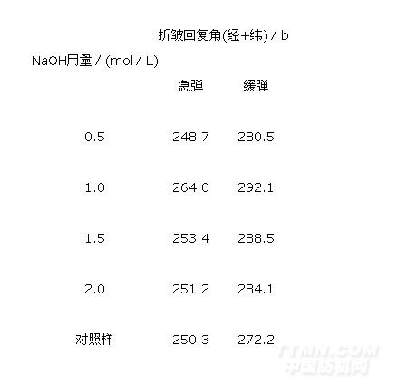 表2 堿用量對織物防皺性能的影響