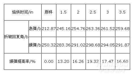 選用不同焙烘時間來整理真絲織物,測定整理后織物的折皺回復(fù)角,結(jié)果見表4。