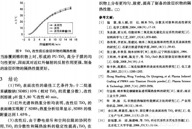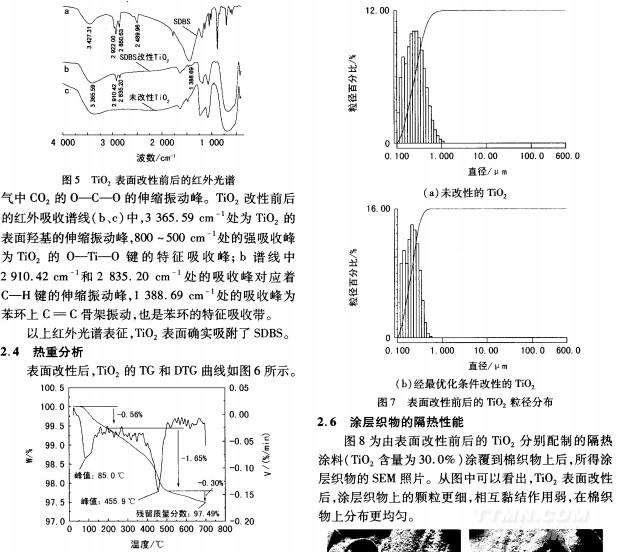 TiO2表面改性及對涂層織物隔熱性能的影響