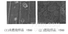 圖2阻燃亞麻織物燃燒前后的S1M照片