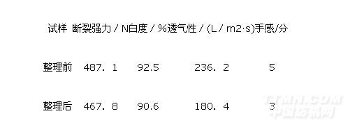 采用質(zhì)量分數(shù)為25%的膨脹型阻燃劑,按照1.3節(jié)工藝整理亞麻織物。整理后織物的強力、白度、手感及透氣性如表3所示。