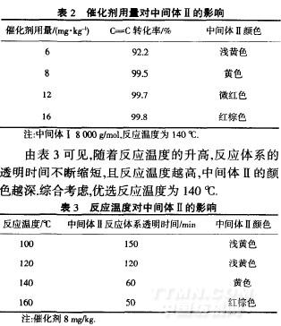 2.2.2催化劑用量及反應溫度對中間體Ⅱ的影響