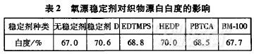 2.2氧漂穩(wěn)定劑對織物漂白白度的影響