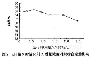 2.5.1pH值9時(shí)活化劑A用量對(duì)織物白度的影響